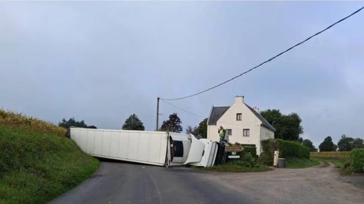 Um camião frigorífico tombou na estrada na quinta-feira, 18 de setembro de 2025, no Crouais (Ille-et-Vilaine), cortando a estrada. O acidente não causou ferimentos.