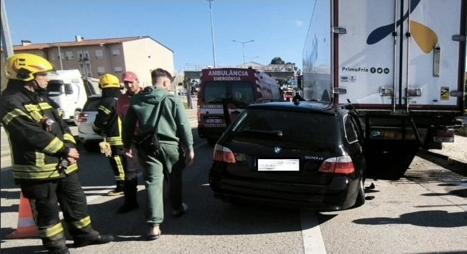 O condutor do veículo ligeiro perdeu o controlo e acabou por embater na traseira de um camião estacionado junto às Bombas de Combustível da BP, em Tavarede.