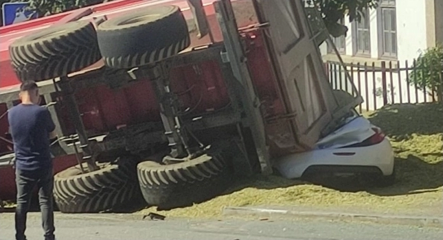 Um trator despistou-se na manhã desta terça-feira, 30 de setembro, e embateu em duas viaturas estacionadas, em Manhente, Barcelos, esmagando uma delas.