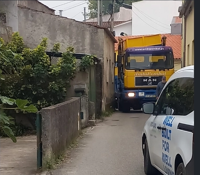 Esta manhã, dia 3 de outubro, um camião da empresa AmbiPombal ficou preso em São Martinho do Bispo, Coimbra, junto à interseção entre a Rua do Lagar e a Rua Fonte da Preguiça.