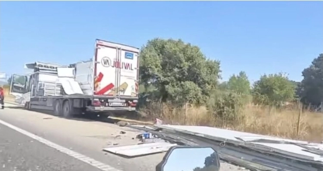 Um veículo pesado derrubou, esta tarde, um painel eletrónico na A1.
