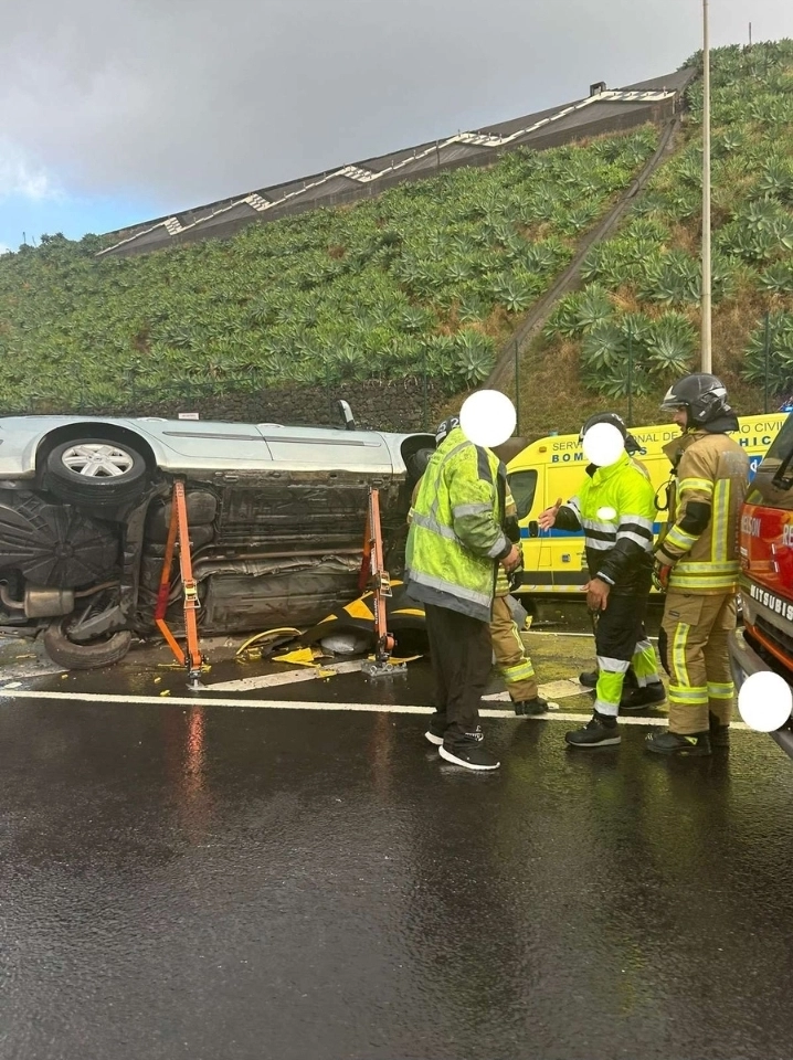 Um carro despistou-se há instantes na via rápida, junto à cabeceira do Aeroporto Internacional da Madeira e capotou lateralmente, no sentido Machico-Funchal.