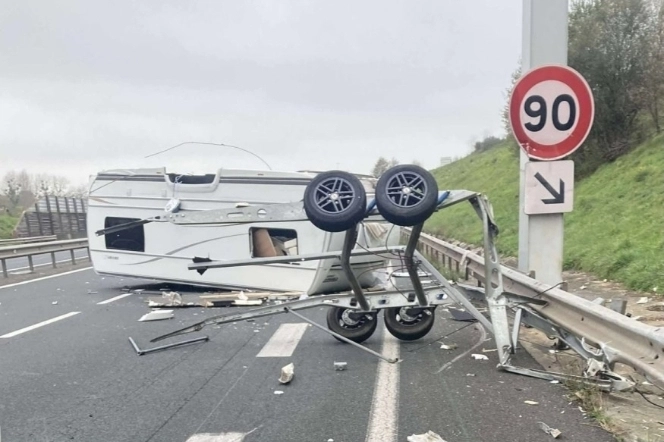 De acordo com informações divulgadas pela rádio regional RJFM, uma caravana virou-se no meio da via, ficando completamente destruída e espalhando destroços pelas faixas de rodagem. A estrutura ficou de lado, com o chassis parcialmente separado e as rodas projetadas para cima, bloqueando quase totalmente a circulação no sentido onde ocorreu o sinistro.
