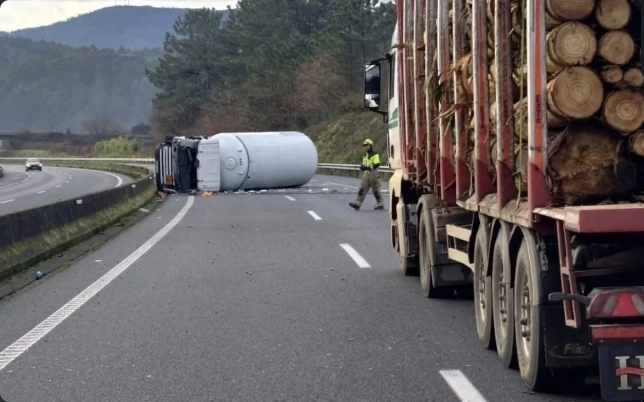 A autoestrada AP-9 esteve cortada ao trânsito no sentido sul, na zona de Portas, na província espanhola de Pontevedra, na sequência de um acidente envolvendo um camião que transportava mercadorias perigosas e um automóvel ligeiro.