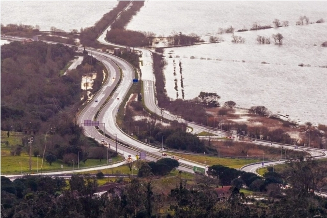 Esta é sensivelmente a mesma zona onde a A14 (então IP3) esteve cortada vários dias, também devido à subida das águas, nas grandes cheias de janeiro de 2001, há 25 anos.