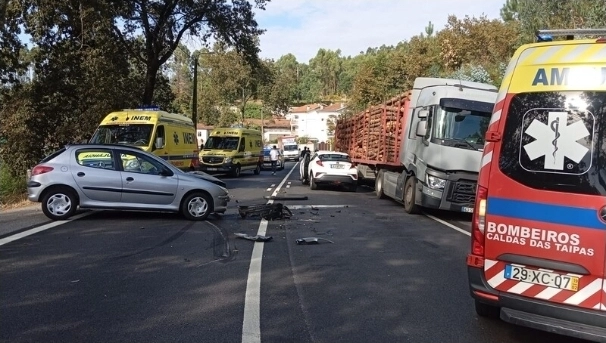 O acidente ocorreu esta tarde e envolveu duas viaturas ligeiras e um veículo pesado.