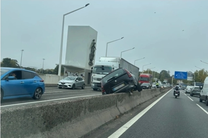 Um carro despistou-se ao início da tarde desta terça-feira, cerca das 12.20 horas, e galgou o separador central da Ponte da Arrábida, no Porto.