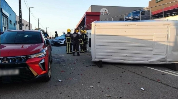 O carro acabou por atingir uma carrinha branca que circulava na estrada, deixando-a tombada lateralmente. Do impacto, a carrinha colidiu ainda com um terceiro veículo que estava estacionado.