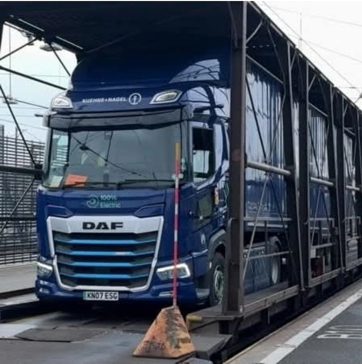 O veículo pesado eléctrico viajou num comboio de carga LeShuttle depois de novos procedimentos de segurança terem sido introduzidos para permitir que veículos elétricos grandes utilizassem o túnel. Espera-se agora que as passagens de HGV elétricas comerciais sejam lançadas ainda este ano 🚆🔋
