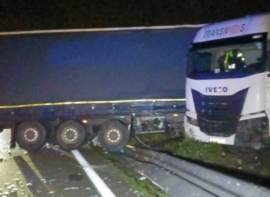 A carga do camião ficou espalhada pela via. Em circunstâncias que ainda não estão apuradas, a viatura pesada atravessou-se e ficou imobilizada no separador central.