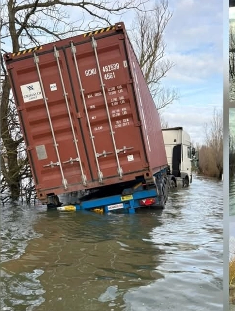 De acordo com a página UKCheckpoints.info, o incidente ocorreu durante a manhã e obrigou ao corte integral da estrada, numa zona conhecida por acumulação de água em períodos de cheias. As imagens divulgadas mostram os veículos parcialmente submersos e inclinados, dificultando qualquer tentativa imediata de remoção.