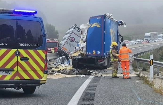 Acidente grave na C-25 antes de Manresa provoca grandes danos materiais