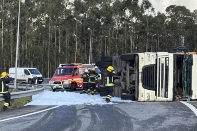 Esposende Um ferido em despiste de camião na saída da A28 em Esposende