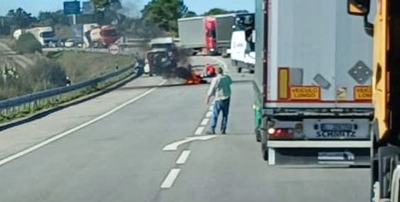 A Autoestrada do Norte (A1) está cortada ao trânsito no sentido sul-n...