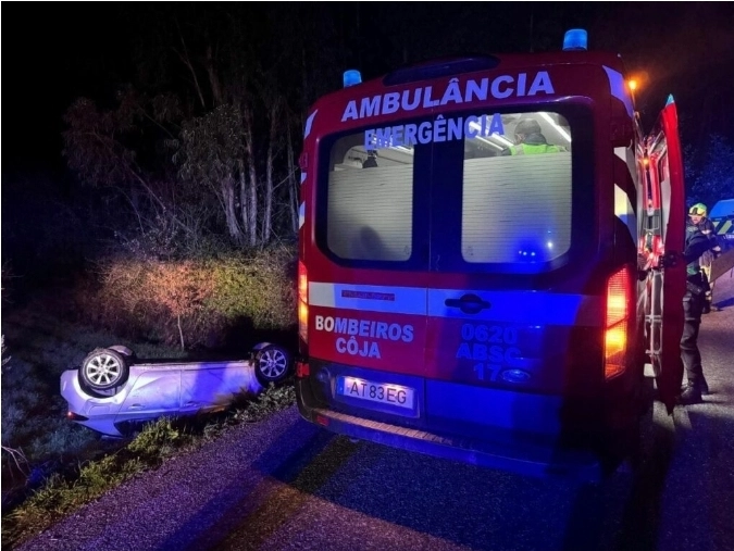 Carro de “pernas para o ar” após acidente em Arganil